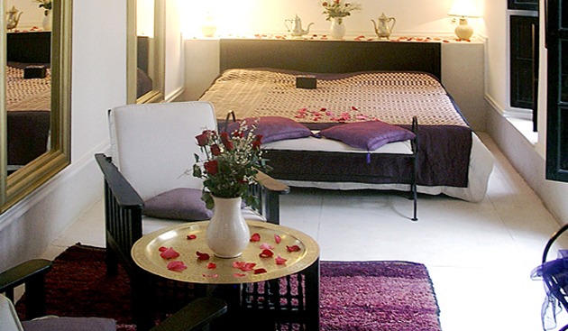 Des fenêtres à croisillons préservent l’intimité des chambres et le riad se transforme en palais des mille et une nuits le soir, lorsque s’allument les lanternes. Les sols recouverts de tapis et les ambiances tour à tour or, jaune et orangées intensifient cette atmosphère à la fois enivrante et mystérieuse. Les six chambres et suites du Riad Ksiba s’ouvrent sur un décor unique et personnalisé, tout en fournissant le meilleur du confort. Les murs de couleur blanche et le mobilier en bois sombre sont égayés par des objets d’artisanat marocain comme de somptueux tapis, des tables avec plateau en laiton et des poufs en cuir. Aventurez-vous sur le toit et admirez la magnifique vue sur les montagnes de l’Atlas depuis la terrasse tout en savourant un repas traditionnel marocain.