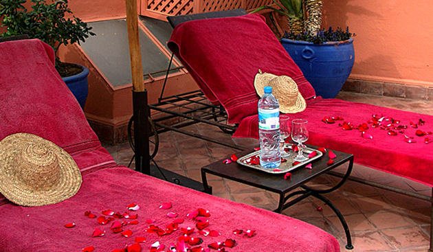 Riad Ksiba : Situé dans le quartier de la Kasbah, le point de départ idéal pour découvrir la ville ocre et ses trésors. Il est à 5 minutes de la place de Jamaa el Fena et des monuments historiques. L’architecture traditionnelle du riad Ksiba est organisée autour d’un patio central, recouvert de mosaïque et planté d’orangers dont les plus hautes branches viennent caresser les balustrades du deuxième étage. Autour de la piscine centrale sont répartis plusieurs salons et canapés pour s’installer confortablement et savourer une tasse de thé à la menthe