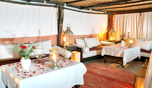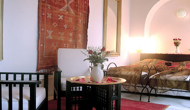 Des fenêtres à croisillons préservent l’intimité des chambres et le riad se transforme en palais des mille et une nuits le soir, lorsque s’allument les lanternes. Les sols recouverts de tapis et les ambiances tour à tour or, jaune et orangées intensifient cette atmosphère à la fois enivrante et mystérieuse. Les six chambres et suites du Riad Ksiba s’ouvrent sur un décor unique et personnalisé, tout en fournissant le meilleur du confort. Les murs de couleur blanche et le mobilier en bois sombre sont égayés par des objets d’artisanat marocain comme de somptueux tapis, des tables avec plateau en laiton et des poufs en cuir. Aventurez-vous sur le toit et admirez la magnifique vue sur les montagnes de l’Atlas depuis la terrasse tout en savourant un repas traditionnel marocain.